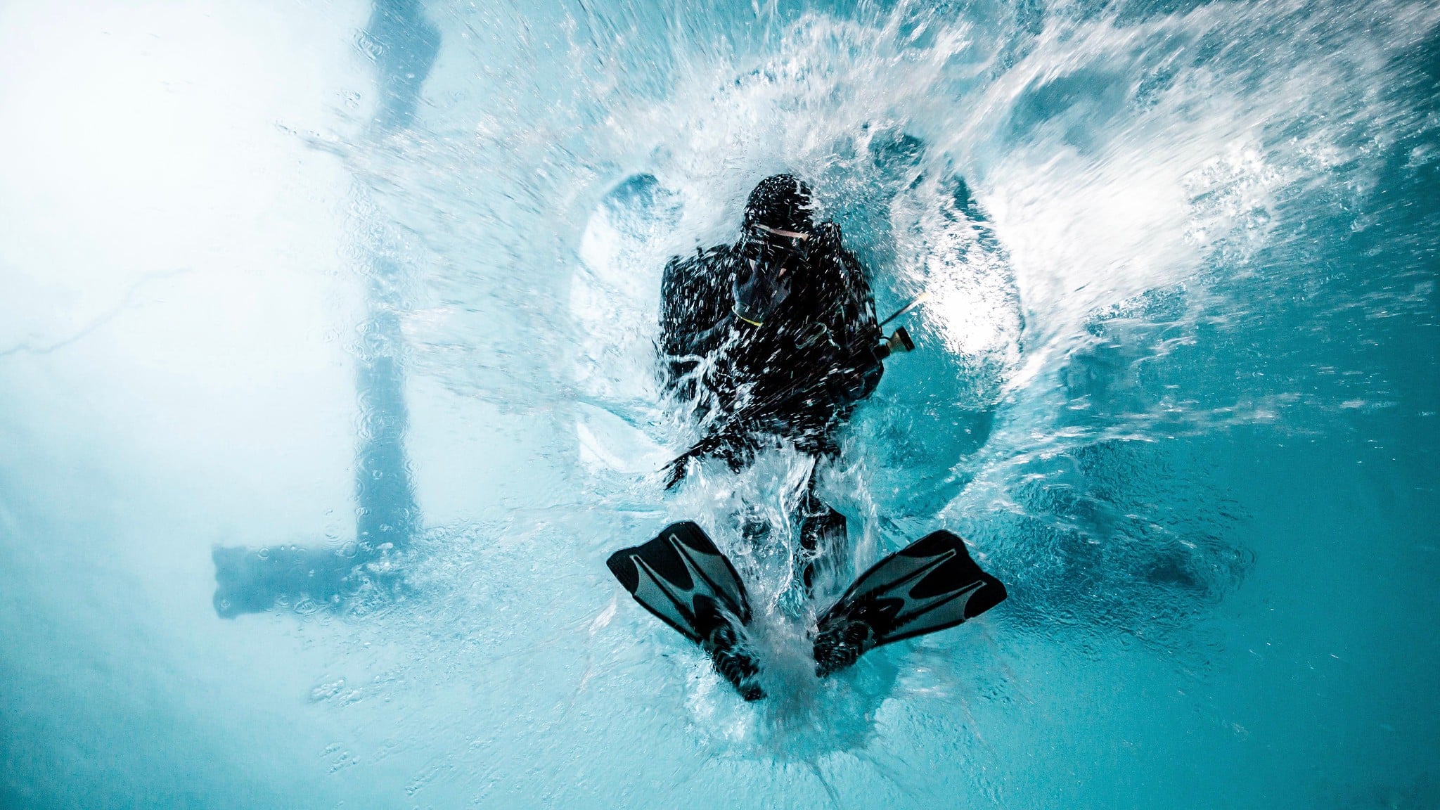 Filmed with a team of cameramen specializing in underwater shots, the video reveals a progression through intriguing corridors until the big dive. In the depths, our commando discovers a tailor-made underwater setting.