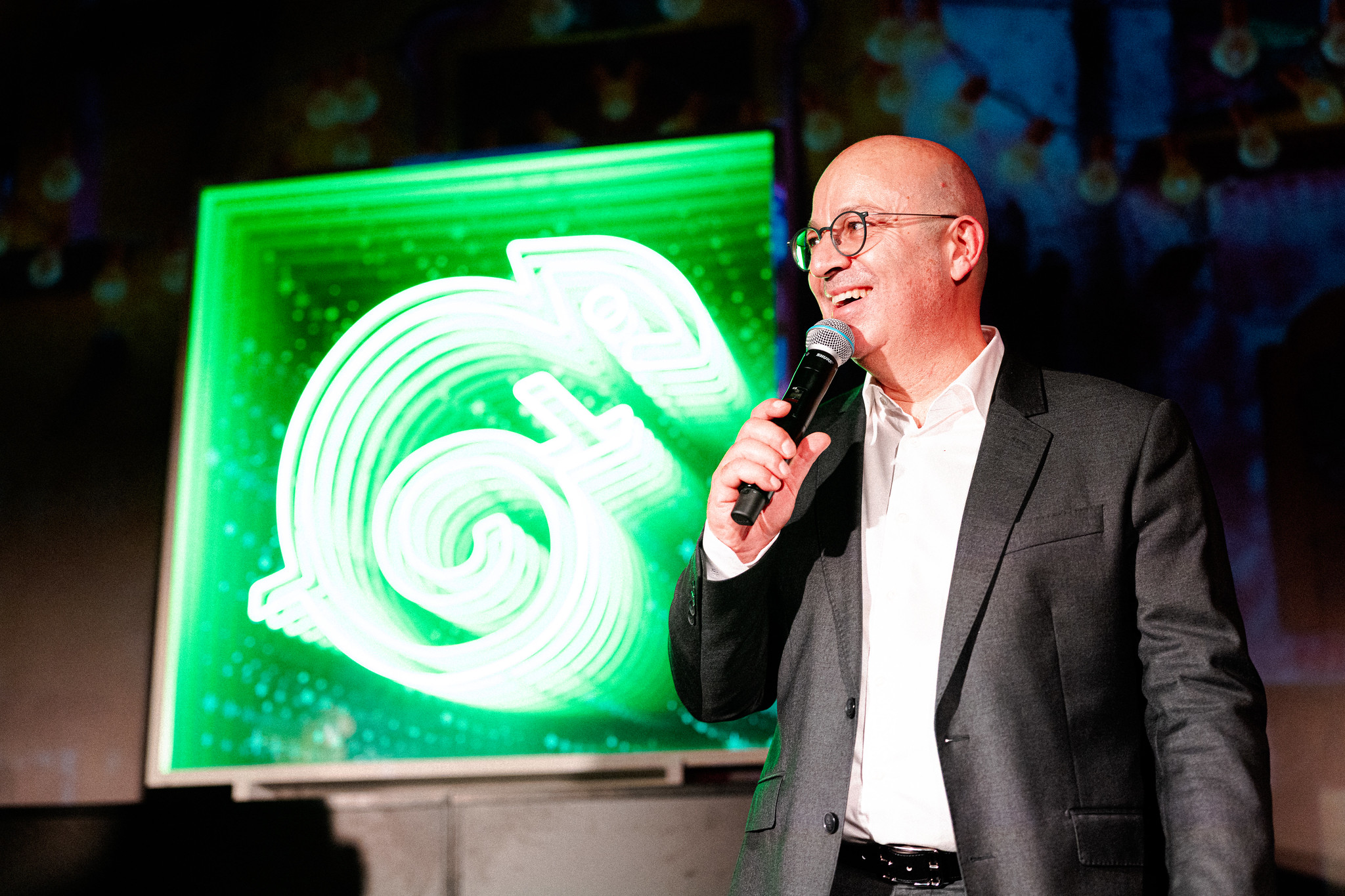 Création d’un néon sur mesure révélé au moment de l’anniversaire.