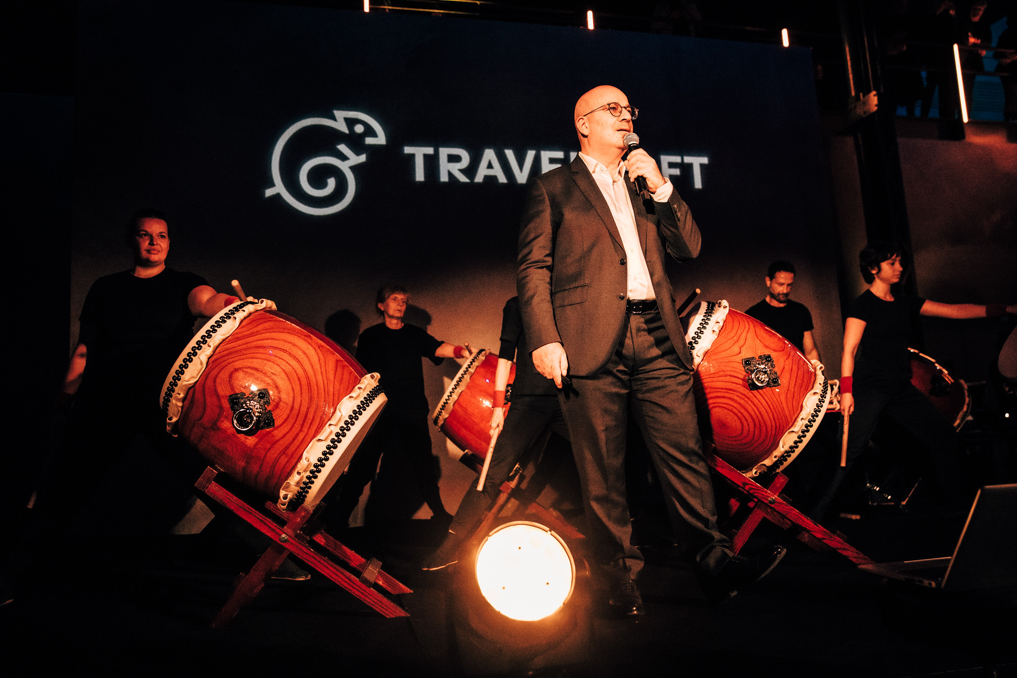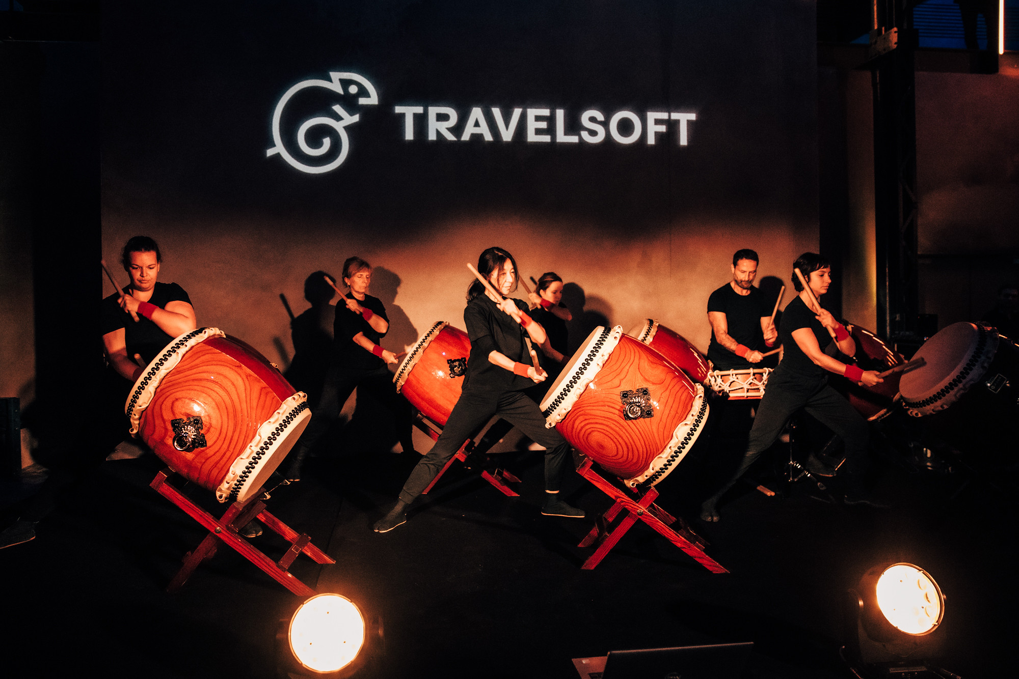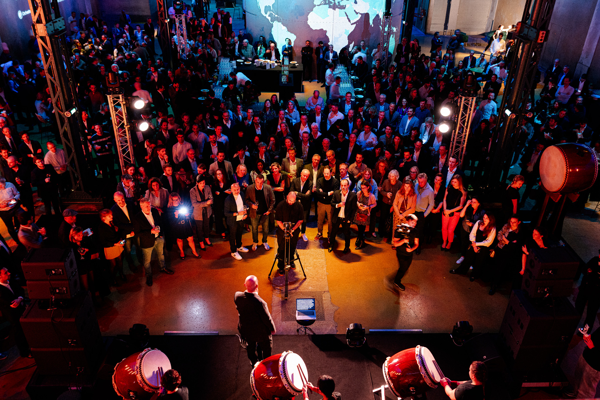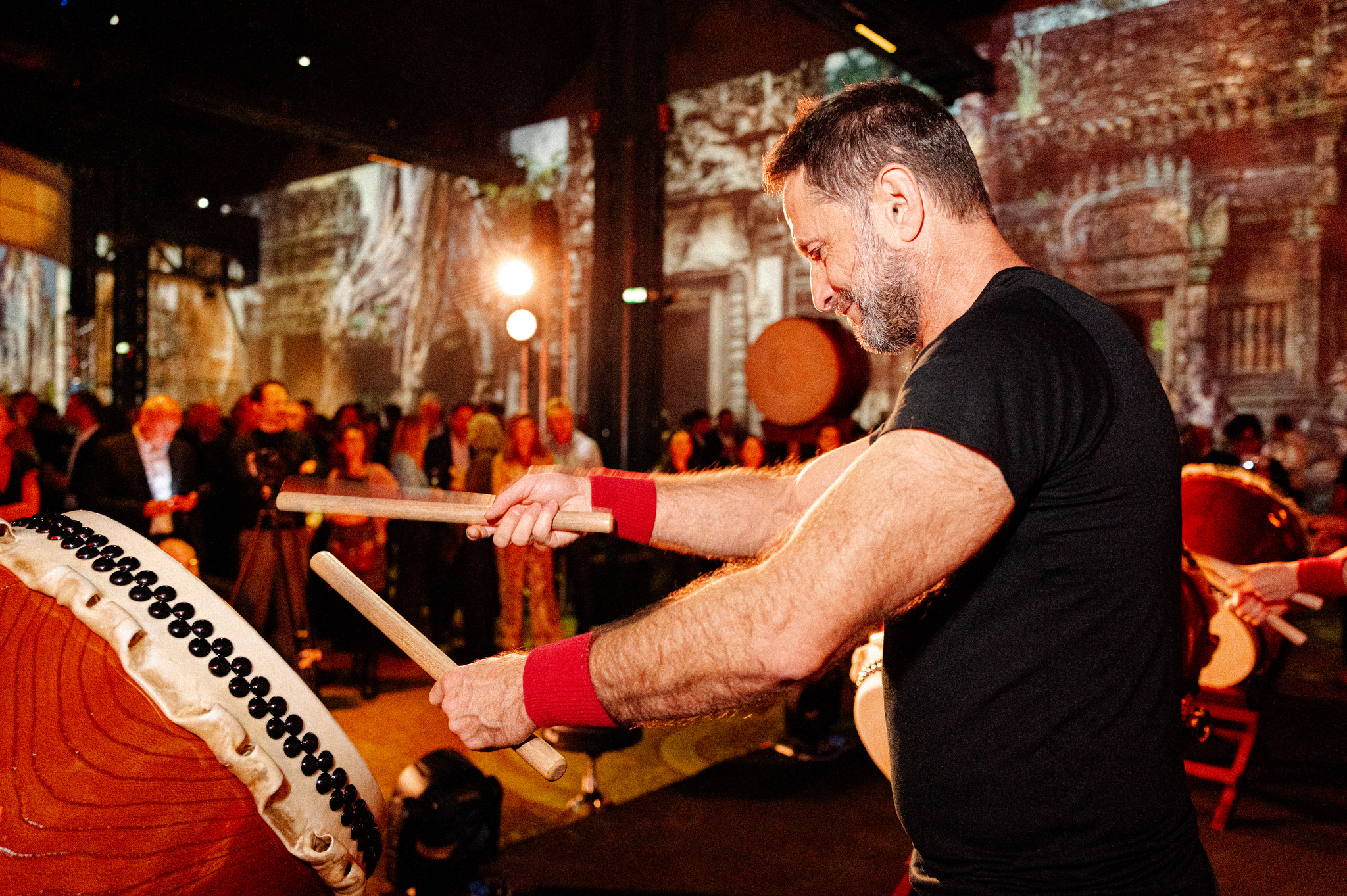 Performance magistrale de tambours japonais type taïko pour amorcer la boucle Asie.